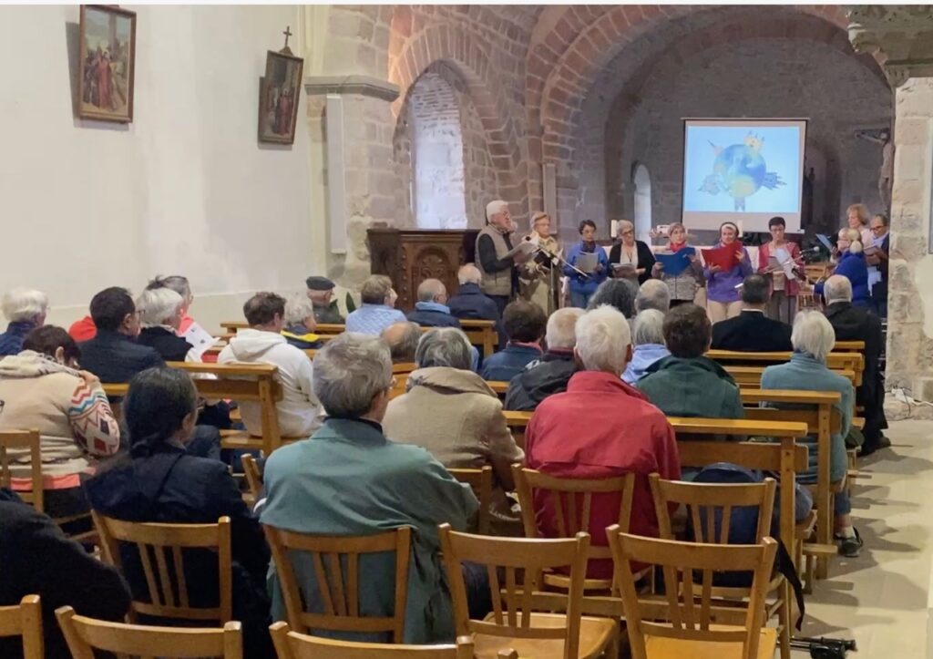 A Montbrison, après une marche méditative de 5km avec plusieurs arrêts pour méditer et prier ensemble en montant jusqu’à la chapelle St Roch, le groupe a rejoint la chorale oecuménique à l’église de St Thomas la Garde pour 1h de chants pour louer Dieu et toute sa création. Une trentaine de personnes étaient présentes pour ce beau moment de marche méditative et de chants … une autre façon de prier.